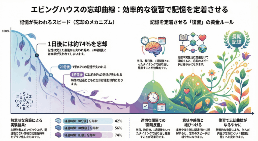 「一度覚えれば大丈夫」と思わず、適切なタイミングで記憶をメンテナンスすることが重要です。